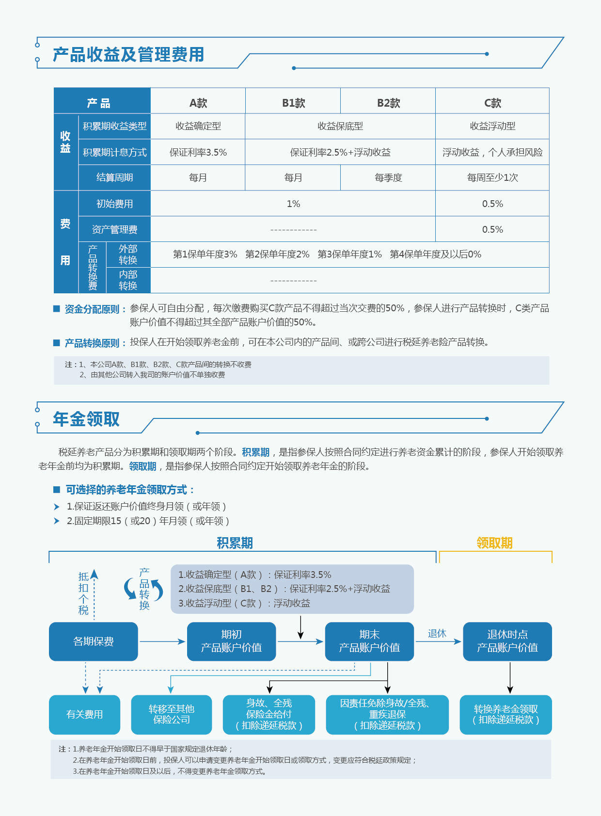 ?、賹⒈竞贤漠a(chǎn)品賬戶價值轉(zhuǎn)移至本公司其他個人稅收遞延型養(yǎng)老年金保險產(chǎn)品時,本公司不收取產(chǎn)品轉(zhuǎn)換費。